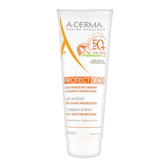 Protect Kids Leche Aderma Niños  una protezione solare molto alta, appositamente formulata per la pelle delicata dei bambini.