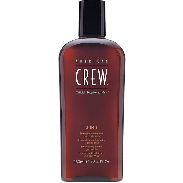 AMERICAN CREW Shampoo 3 in 1 per la pulizia profonda del corpo e dei capelli degli uomini. Formulato con Dimeticone, Acido Agrumato, Cloruro di Sodio e Sage, estratto di foglie che aiuta a districare e a donare lucentezza ai capelli.