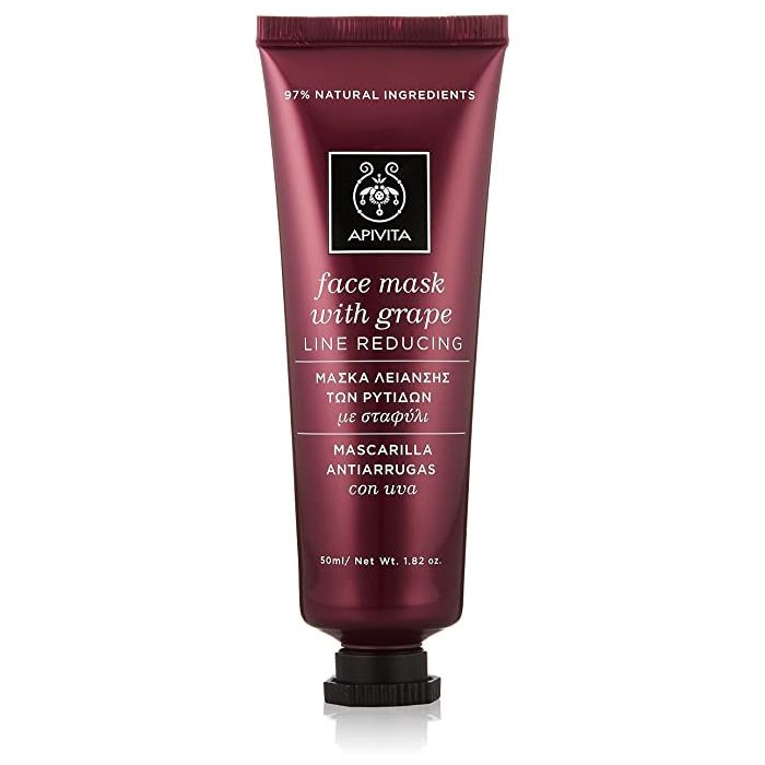 Maschera viso antirughe all'uva, infusa con tè verde biologico per la sua azione antiossidante.