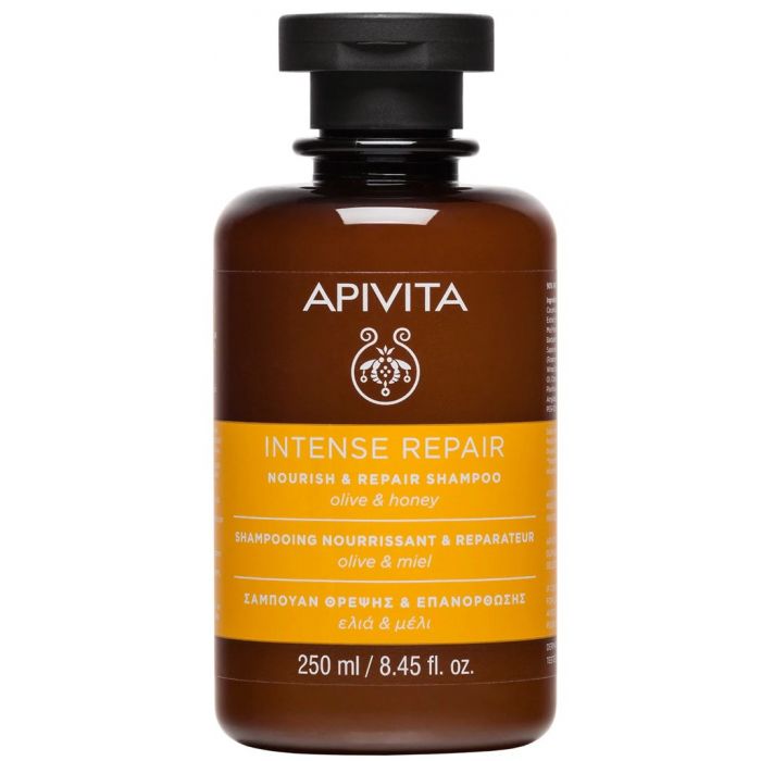 Apivita Intense Repair Olive & Honey Nourishing Shampoo nutre e idrata profondamente i capelli, ripristinando la lucentezza e la forza perdute grazie agli oli biologici di oliva, mandorla e grano, alle proteine del grano e alle vitamine.