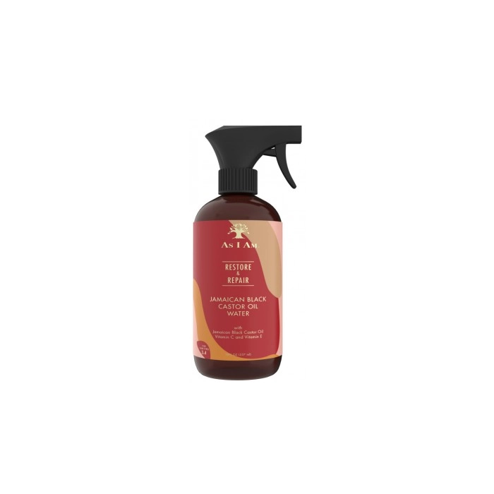 AS i AM Restore & Repair Jamaican Black Castor Oil Water Spray è un'acqua all'olio di ricino nero giamaicano che sostituisce la normale acqua nella routine quotidiana di cura dei capelli.