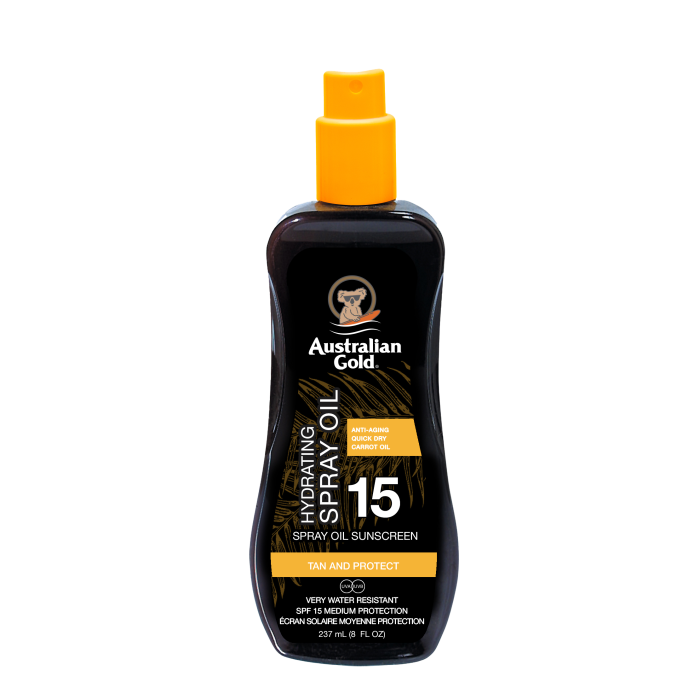 Protezione solare con olio idratante Australian Gold broncede istantaneamente la pelle, idratandola e protegge ndola efficacemente grazie alla sua formula arricchita con olio di carota e albero di tè.