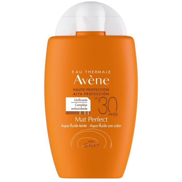 AVÈNE Mat Perfect Aqua Fluido SPF30, crema solare colorata per viso e collo ad alta protezione per pelli miste o grasse. Texture Aqua-fluida, oil free.