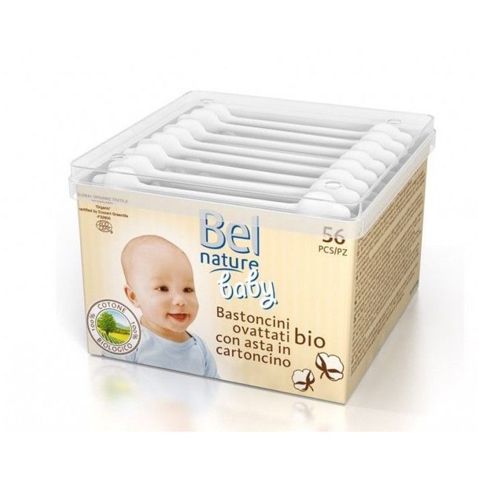 Tamponi di cotone 100% organico con una forma adatta alle orecchie e al naso del bambino. Con questi tamponi è possibile pulire in modo sicuro le orecchie e il naso del bambino.