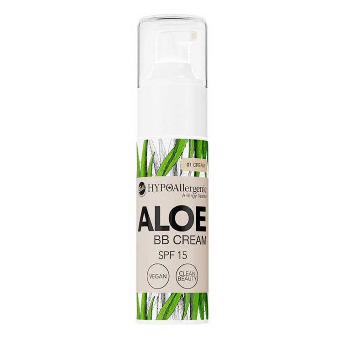 BELL Aloe BB Cream Ipoallergenico SPF15 contiene succo di foglie di aloe che nutre la pelle e SPF15 che protegge dai raggi solari dannosi.