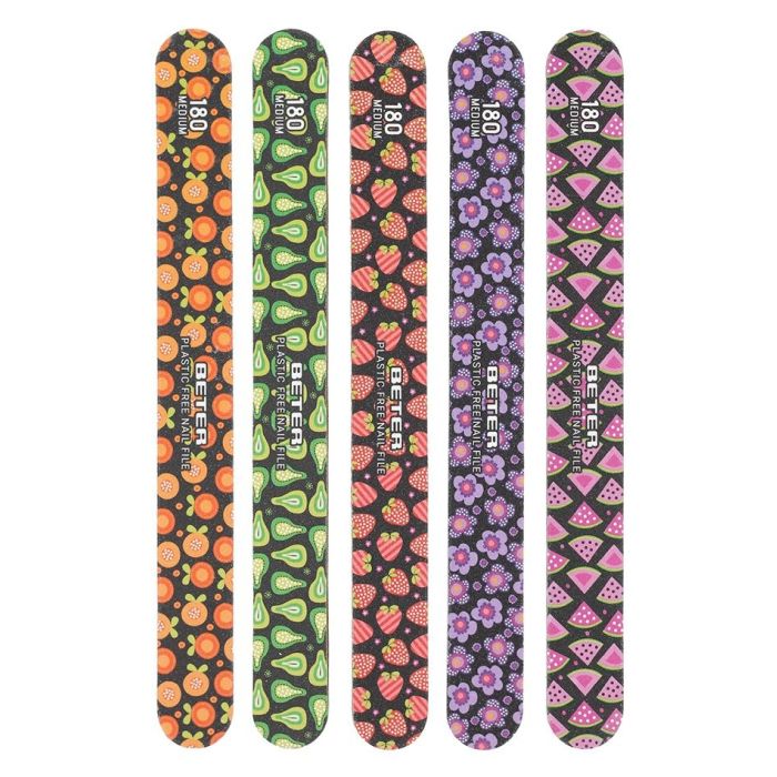 Lima per unghie in fibra di vetro a doppia grana 180/220, progettata per una limatura precisa e duratura. Il suo design unico e aggiornato presenta cinque vivaci motivi di frutta e fiori, per dare un tocco di freschezza e giovinezza alla vostra manicure.
