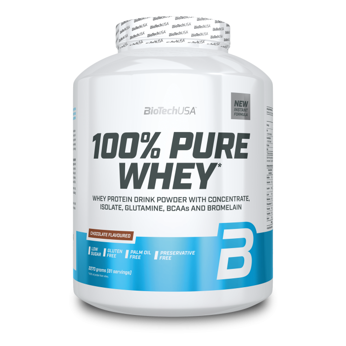 100% Pure Whey di BioTech USA è un eccellente integratore alimentare a base del miglior concentrato di siero del latte più ricco di BCAA per la preparazione di frullati proteici e il mantenimento della muscolatura. Inoltre, è una miscela straordinariamente sana, in quanto è priva di glutine, zuccheri aggiunti, aspartame e conservanti.
