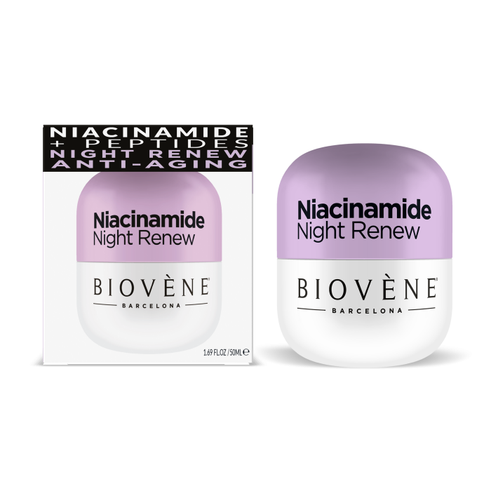Affrontate ogni nuovo giorno con fiducia e sembrate più giovani con Niacinamide Night Renew, una crema notte rinnovatrice con potenti peptidi anti-età e mirtilli da agricoltura biologica. Questa formula è il vostro segreto per svegliarvi con una pelle fresca e ringiovanita.