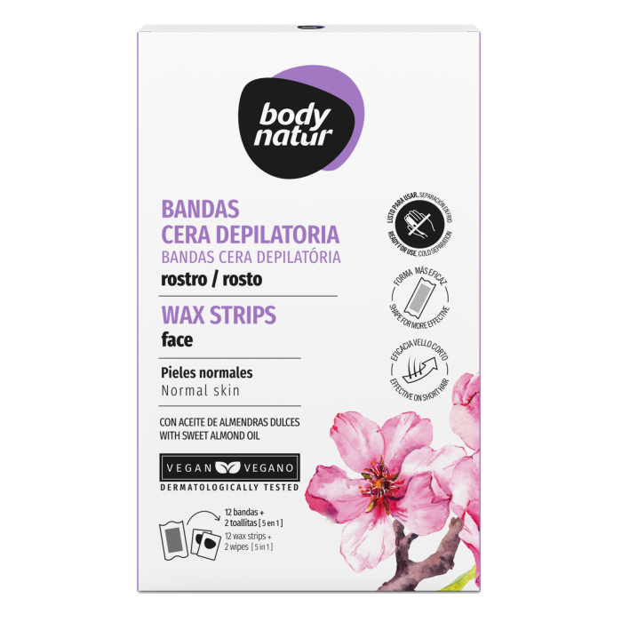Arricchite con olio di mandorle dolci, le strisce per il viso Body Natur Pelle Normale garantiscono una depilazione perfetta e duratura (fino a 4 settimane), rispettando la pelle sensibile del viso.