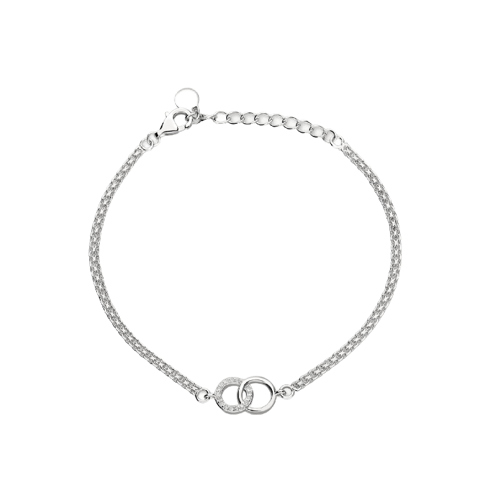 Il bracciale Bond è realizzato in argento sterling con una maglia centrale a incastro. Un pezzo che simboleggia l'unione e l'equilibrio, come un sottile legame di eleganza duratura.