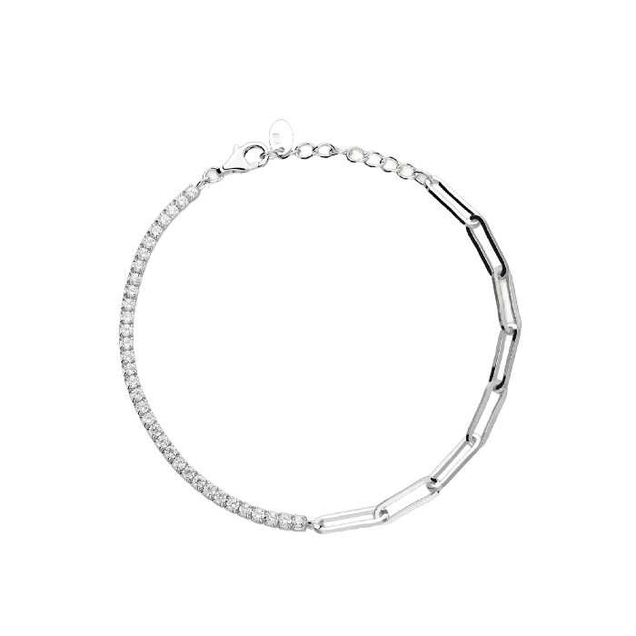 Il bracciale Anchor è realizzato in argento sterling con maglie rettangolari. Un design che trasmette forza e stile, ancorando il polso femminile con una presenza moderna e sofisticata.