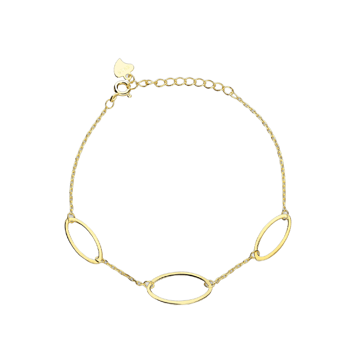 Il bracciale Smile è realizzato in argento placcato oro 18 carati con forme ovali. Un design che scorre come un sorriso dorato, portando luce, armonia e un tocco di ottimismo.