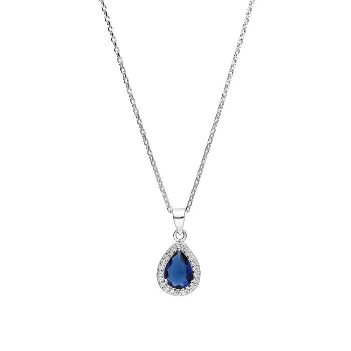 La collana Blue Lagoon è realizzata in argento sterling con una pietra blu intenso circondata da scintille. Un design che evoca una laguna nascosta, portando un bagliore fresco ed enigmatico alla scollatura.