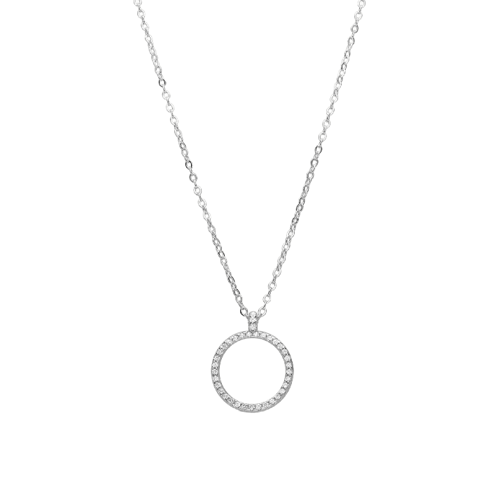 La collana Brightness è realizzata in argento sterling con un cerchio scintillante. Un design che riflette la luce all'interno e che eleva ogni movimento con radiosa eleganza.