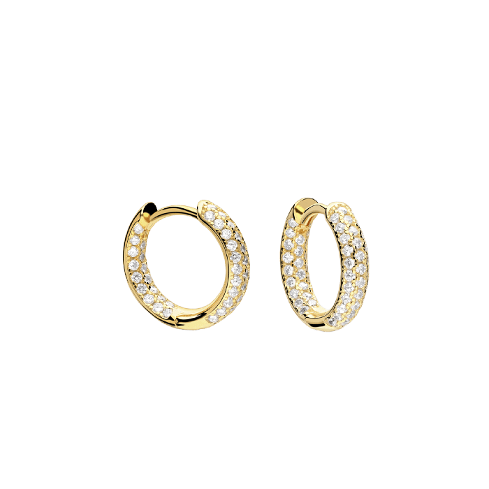 Gli orecchini a cerchio Carnation sono realizzati in argento placcato oro 18 carati a forma di cerchio con gemme danzanti. Come un garofano dorato che volteggia nella luce, il loro movimento emana un fascino naturale.