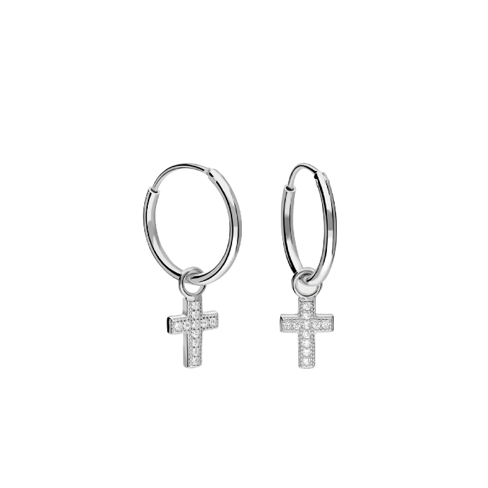 Gli orecchini Halo Silver sono realizzati in argento sterling e presentano un design delicato con una croce scintillante, che evoca la purezza e la luminosità di un'aureola celeste.