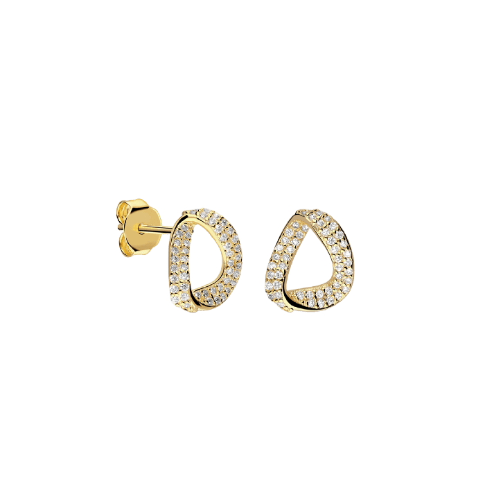 Gli orecchini Agora sono realizzati in argento placcato oro 18 carati con una forma aperta e una texture lucida. Un design che evoca la geometria classica con una raffinatezza architettonica dorata.