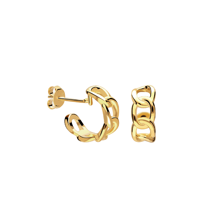 Gli orecchini Cinnamon sono realizzati in argento placcato oro 18 carati con maglie morbide e arrotondate che evocano il calore speziato della cannella sotto forma di un gioiello avvolgente.