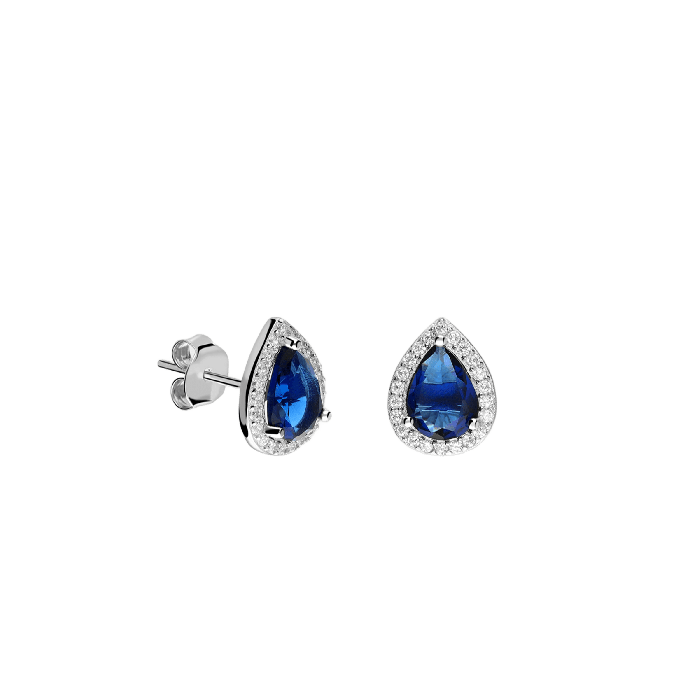Gli orecchini Blue Lagoon sono realizzati in argento sterling con gemme blu intenso incorniciate da brillantini.