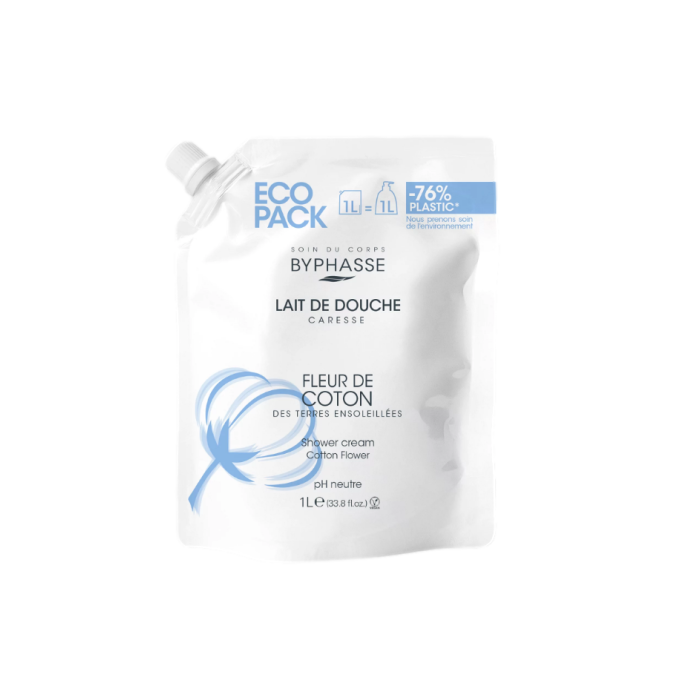 La confezione da 1 litro risparmia il 76% di plastica, rispetto ad un tradizionale flacone di gel doccia della stessa capacità.