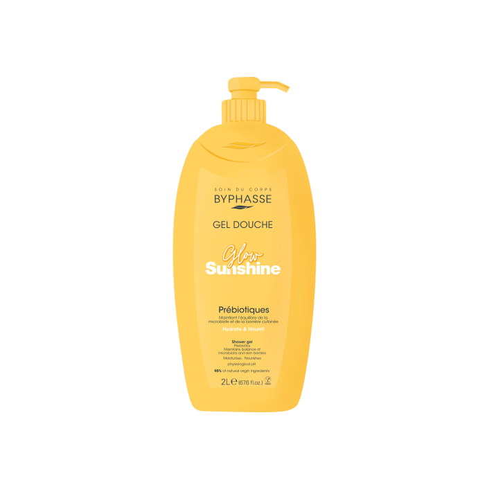 Gel doccia glow sunshine con prebiotici. Deterge, idrata e nutre la pelle, mantenendo l'equilibrio del microbiota e della barriera cutanea. Ha una fragranza gourmand e una texture setosa e perlata.