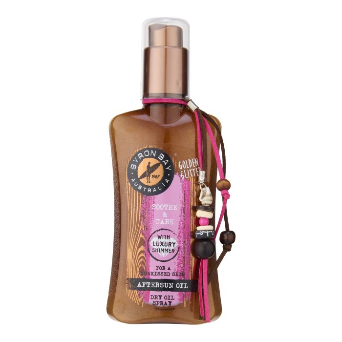 Questo olio secco spray, arricchito con lussuosi scintillii dorati, calma e cura la pelle solare.