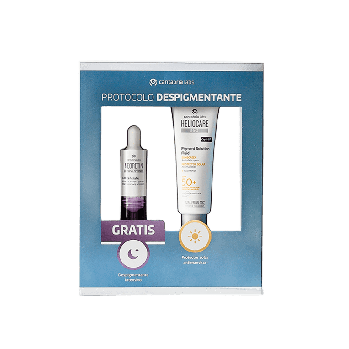 Questo pack è stato progettato per ridurre e prevenire le macchie della pelle, fornendo una soluzione completa per trattare l'iperpigmentazione e uniformare il tono della pelle. Composto da Neoretin Discrom Control Concentrate e da Heliocare 360º Pigment Solution Fluid SPF 50+, questo protocollo agisce su macchie solari, melasma, lentiggini e segni dell'acne, proteggendo e riparando la pelle allo stesso tempo.