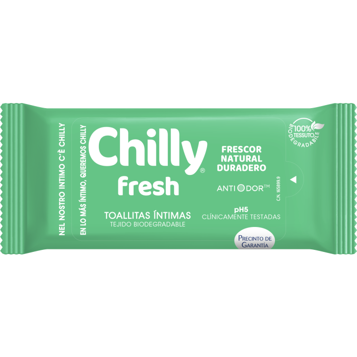 SALVIETTINE IN GEL CHILLY FORMULA FRESCA: Grazie alla sua formula naturale al mentolo, le salviette per l’igiene intima Chilly Gel Formula Fresca contribuiscono alla protezione intima e ti donano una freschezza naturale che dona una sensazione di vitalità per tutto il giorno.