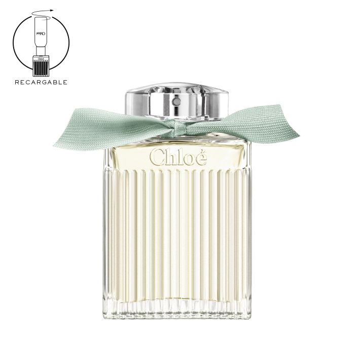 Chloé offre ora un nuovo flacone ricaricabile da 100 ml che può essere riempito grazie a un nuovo formato di ricarica da 150 ml senza perdere nemmeno una goccia. In linea con le sue iniziative per ridurre l'impatto sull'ambiente, i materiali riciclati rappresentano ora il 25% del vetro e il 40% del cartone utilizzato per la confezione. Ispirato all'iconica camicetta in crêpe de chine di seta della Maison con un fiocco femminile sul collo, il flacone senza tempo di ispirazione vintage è ornato da un nastro 100% riciclato legato a mano in una nuova tonalità verde naturale.