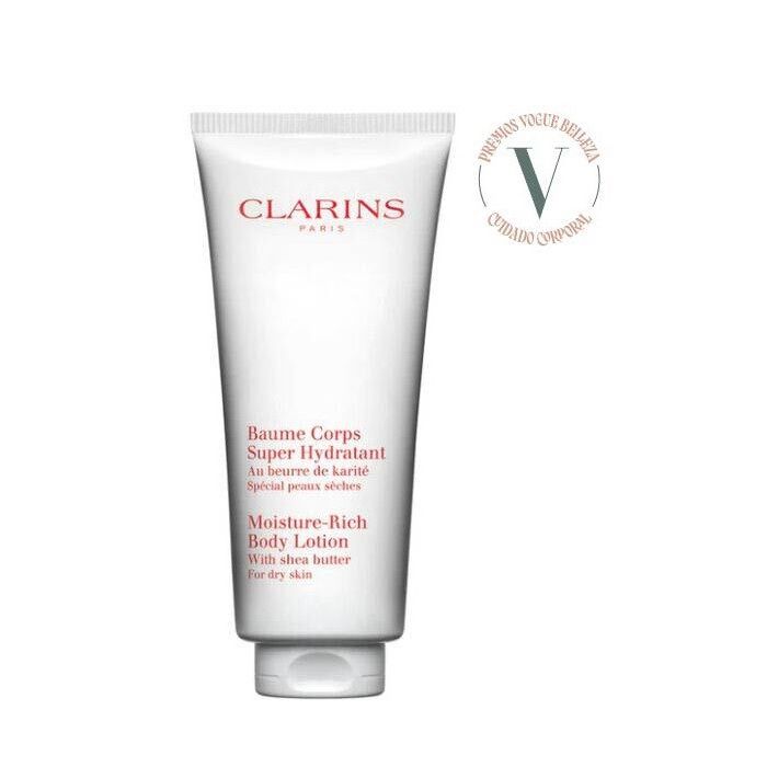 La texture ultra-confortevole e ultra-confortevole del balsamo per il corpo super idratante Clarinsavvolge la pelle con un profumo delicato senza lasciare residui.