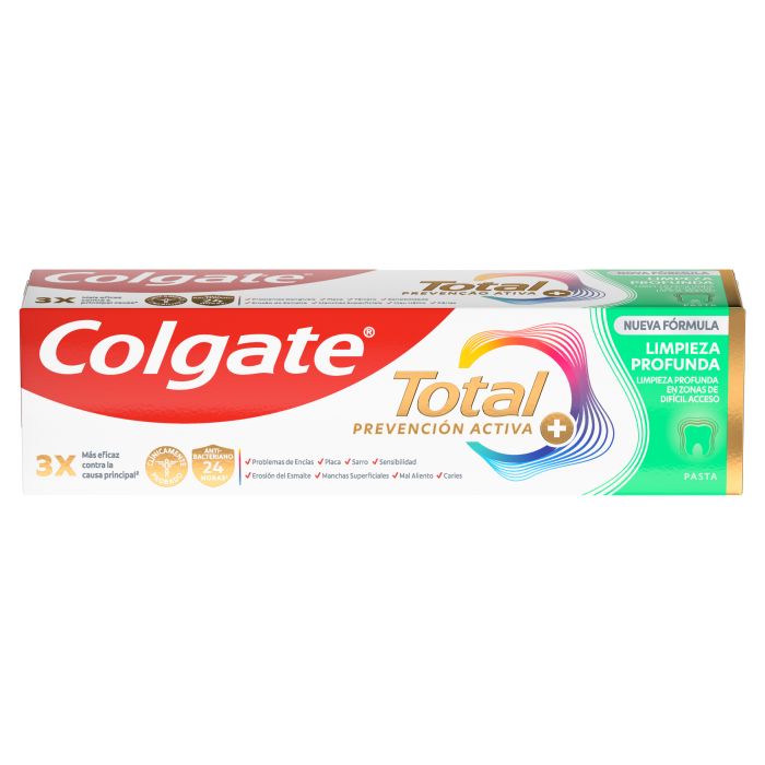 Colgate Total Clean Dentistcombatte in modo proattivo batteri, macchie e acidi presenti negli alimenti e contro l’alito cattivo. Fornisce sollievo dalla sensibilità dentale.