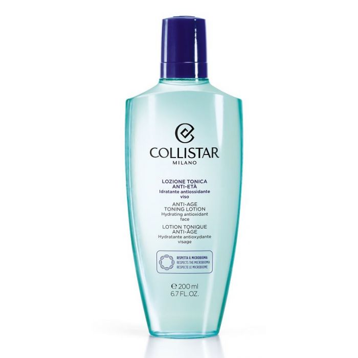 Collistar Lozione Tonica Antietà contiene un composto vitaminico, vitamine A, E e B5 con acido ialuronico, escina e burro di karité, che nutrono la pelle e contrastano la comparsa dei segni del tempo.