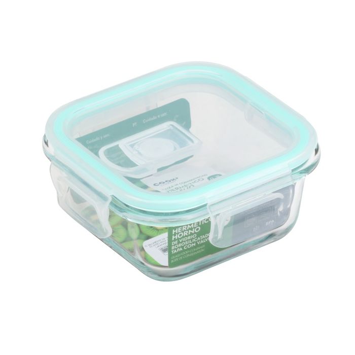 Contenitore ermetico per forno in vetro borosilicato e coperchio con valvola.