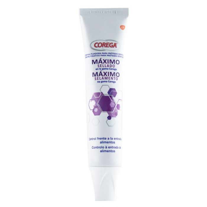 Corega Maximum Sigilled Dental Protesis Crema fissante blocca l'ingresso di cibo fornendo una tenuta superiore. Corega Previene le irritazioni causate dall’accumulo di particelle di cibo tra la protesi e la gengiva. Fino a 12 ore di tenuta e aumento della forza del morso. Non aromatizzato.