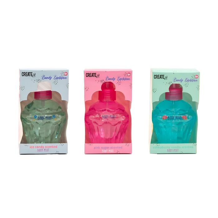 Scoprite l'esplosione di dolcezza coni Body Mist Create It! Candy. Regalate alla vostra pelle un tocco di irresistibile freschezza con queste deliziose fragranze, pensate per farvi sentire come se foste circondati da dolci leccornie.