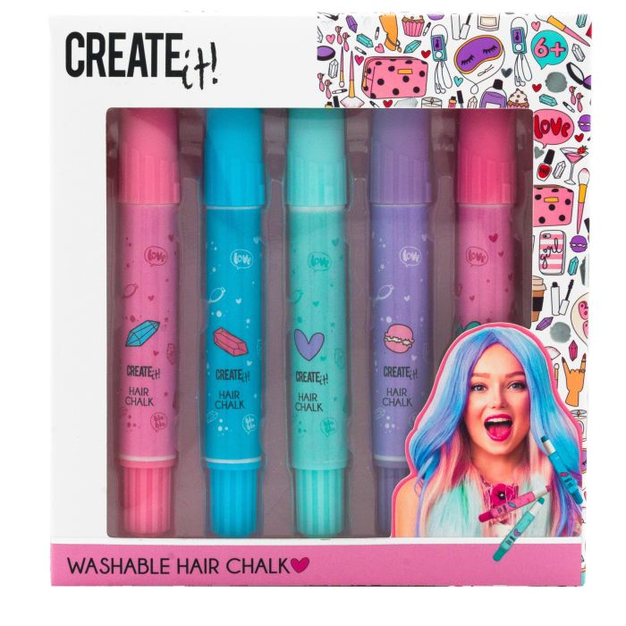 Un set di cinque gessetti colorati per capelli che vi permetteranno di cambiare la vostra acconciatura in modo rapido ed efficace! Il set comprende tonalità pastello (giallo, rosa, blu, viola e verde) che aggiungeranno espressività a qualsiasi acconciatura. I gessetti sono facili da usare, lavabili e adatti ai capelli, così da poterli usare quando si vuole senza preoccupazioni.