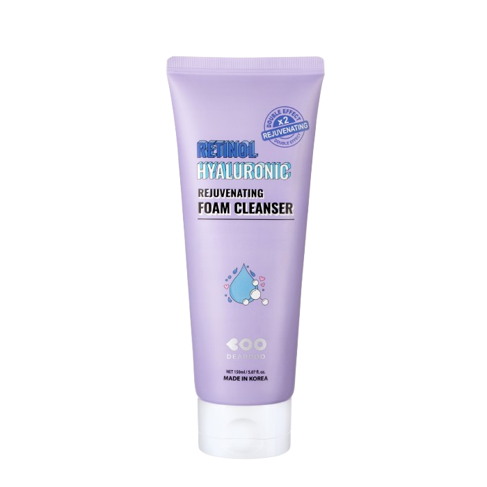 Dearboo Rejuvenating Night Foaming Cleanser con retinolo e acido ialuronico. Questo detergente delicato è formulato per rimuovere le impurità e fornire una potente dose di ingredienti anti-età.