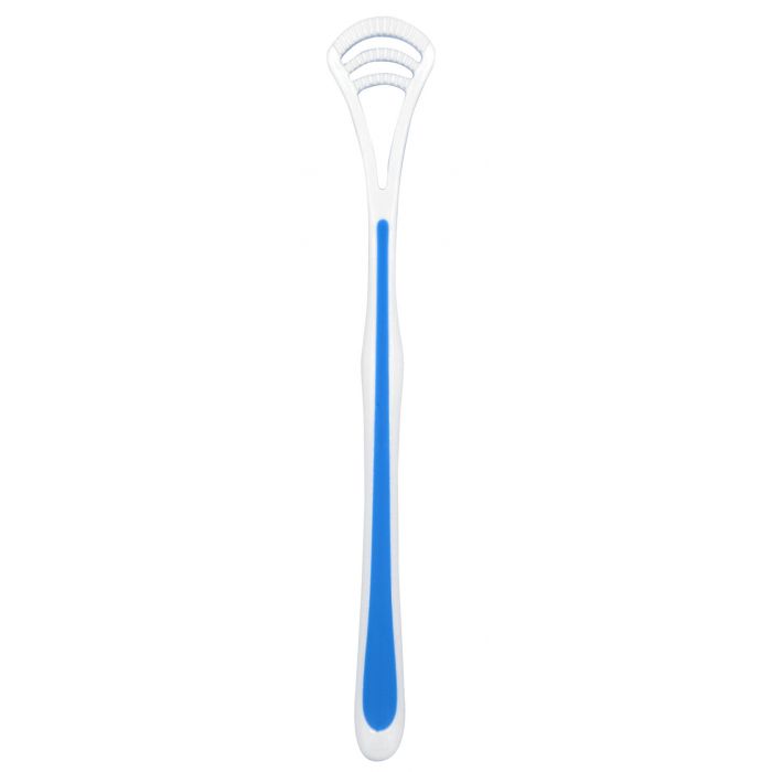 Detergente per la lingua a doppia azione, progettato per rimuovere efficacemente i batteri che causano l’alito cattivo.