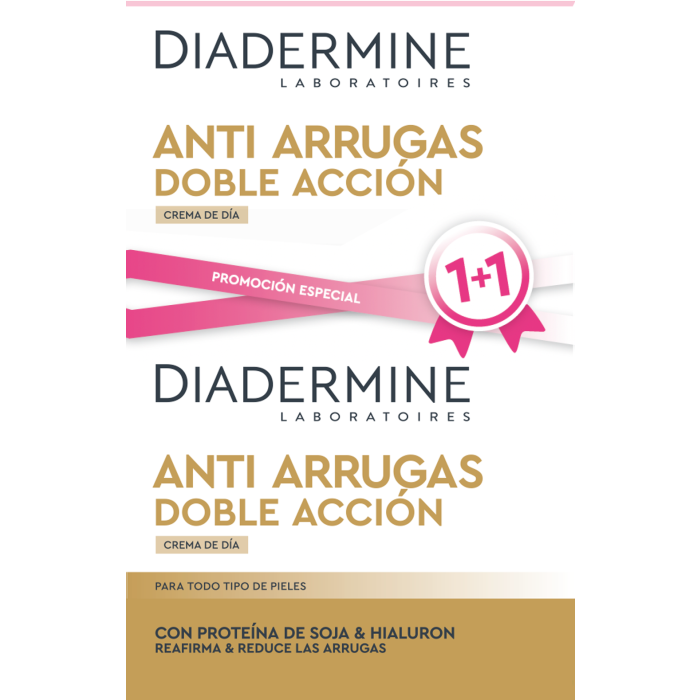 La Crema Giorno Antirughe Doppia Azione di diadermine ha una formula con proteine della soia e ialuronano che attiva la produzione di collagene per rassodare e sollevare i contorni del viso, nutre e idrata intensamente.