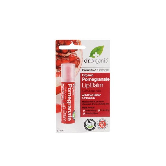 Balsamo Labbra con Granada Organica: è un balsamo labbra lenitivo che combina le proprietà antiossidanti del melograno biologico con le proprietà idratanti e lenitive del burro di karité e della vitamina E e offre una protezione SPF 15 contro i dannosi raggi UVA e UVB del sole.