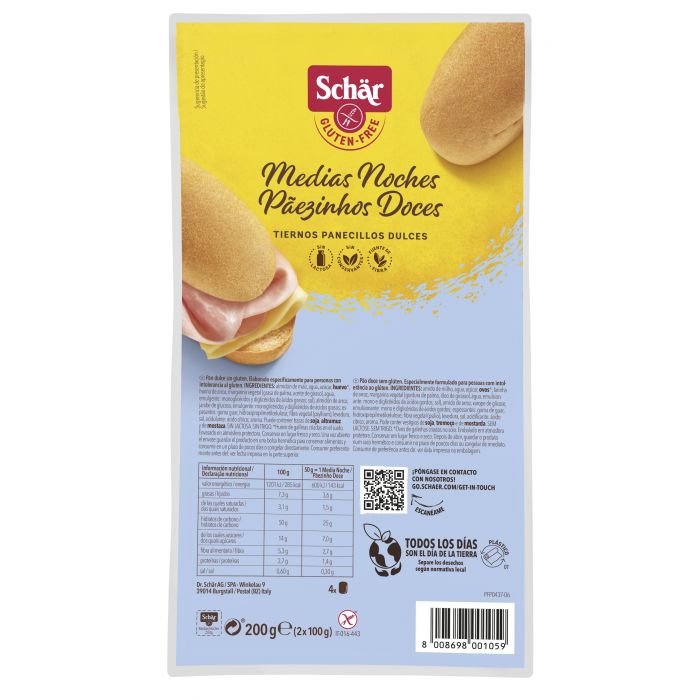 DR SCHÄR BON MATIN: Panini di brioche dolci, dorati all’esterno e teneri all’interno. Questo prodotto è realizzato con materie prime prive di glutine e frumento.
