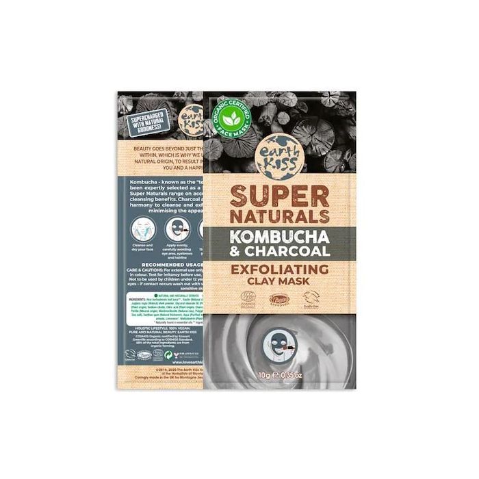 Earth Kiss Exfoliating Kombucha Charcoal & Clay Mask rivitalizza e aiuta a mantenere la pelle più liscia e luminosa. Ricca di probiotici, aiuta la pelle ad apparire più idratata. Contiene vitamine B1, B6, B12 e vitamina C che aiutano a sostenere la funzione delle cellule e i danni ossidativi. Ogni ingrediente di Earth Kiss Super Naturals Kombucha & Charcoal Exfoliating Clay Mask è stato accuratamente scelto per la sua capacità di sostenere e potenziare gli effetti detergenti, illuminanti, nutrienti e rivitalizzanti del suo ingrediente principale, il kombucha. Il carbone è incluso per pulire ed esfoliare delicatamente la pelle, mentre le vitamine C, B1, B6 e B12, adatte alla pelle, stimolano delicatamente ed efficacemente i pori a rilasciare le tossine, illuminando la carnagione.