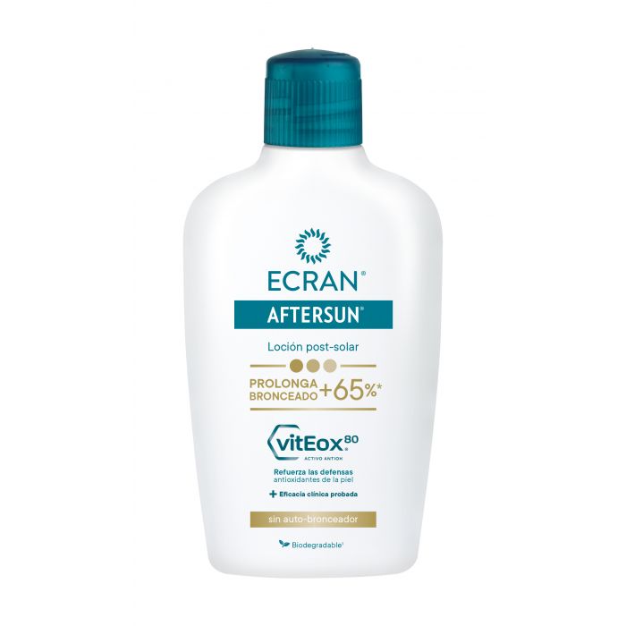 Aftersun Lozione Riparatrice Estesa Abbronzatura Ecran contiene sostanze specifiche e all’avanguardia che prolungano l’abbronzatura.