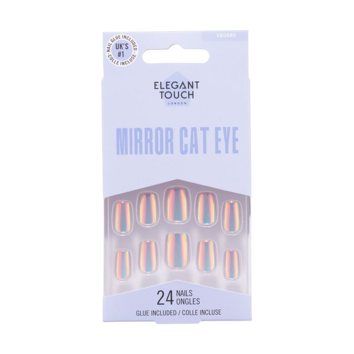 Unghie da urlo senza uscire di casa! Il set Elegant Touch Mirror Cat Eye Square offre una manicure resistente e di qualità da salone, con un super gel touch che riflette la luce come un vero e proprio effetto "occhio di gatto".