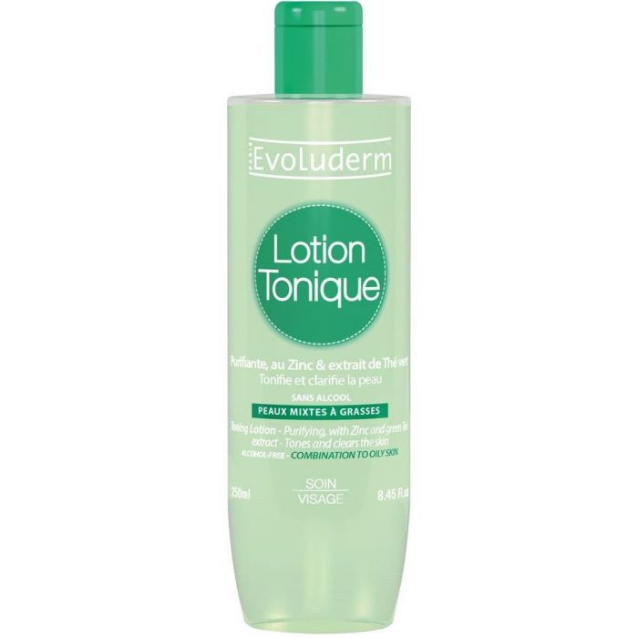 LOZIONE TONICA PURIFICANTE EVOLUDERM: la lozione tonica purificante di Evoluderm contiene zinco ed estratto di tè verde, che tonificano e purificano la pelle. Lo zinco è noto per le sue proprietà purificanti e il tè verde è un eccellente antiossidante. Rimuove tutte le impurità senza seccare la pelle.