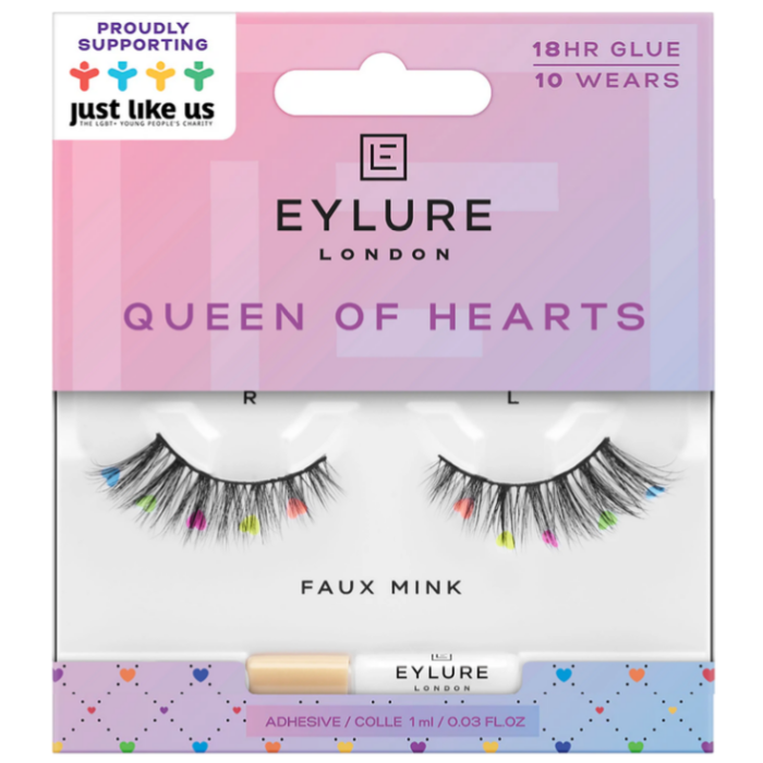 Aggiungete uno splendido tocco colorista alle vostre ciglia con le ciglia Eylure Pride Queen of Hearts. Le ciglia Queen of Hearts di Eylure sono caratterizzate da un design svasato con gruppi di ciglia molto sottili. Queste ciglia sono ideali per ottenere un effetto sollevato e naturale una volta applicate. Le ciglia Eylure Queen of Hearts sono caratterizzate da cuori d'amore dai colori vivaci sparsi lungo le setole delle ciglia.