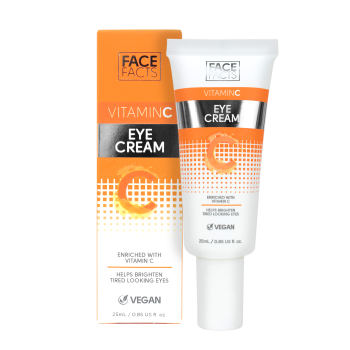 Rivitalizzate il vostro sguardo con Face Facts Vitamin C Eye Cream, una formula leggera ma potente che combatte stanchezza e occhiaie. Arricchita con vitamina C, acido ialuronico e vitamina B5, idrata a fondo, lenisce e illumina visibilmente la delicata zona degli occhi.