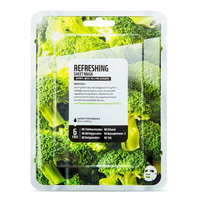 Maschera rinfrescante al broccolo Farmskin. Contiene le vitamine e i minerali del broccolo, con effetti nutrienti e rinfrescanti per il viso, con ingredienti vegetali al 100%.