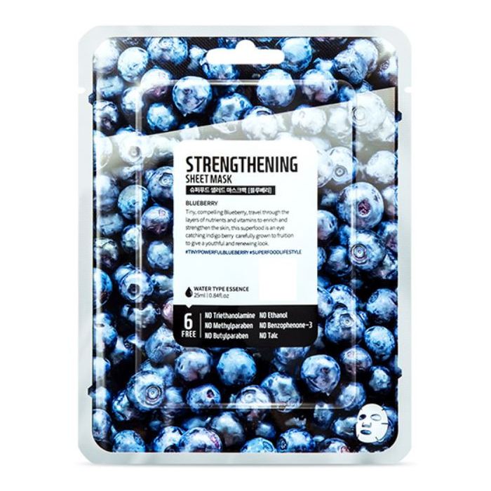 La Maschera Tonificante ai Mirtilli di Farmskin non contiene una varietà di parabeni, talchi o etanoli. La pellicola della maschera contiene materiali estratti da eucalipto, che aiutano a raggiungere efficacemente la pelle.