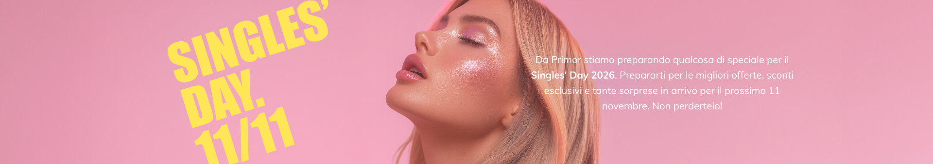 Ogni 11 novembre si celebra il celebre Singles’ Day, la Giornata Mondiale dei Single. Un’occasione per festeggiare l’amor proprio e la libertà di essere se stessi. Da Profumerie Primor vogliamo aiutarti a vivere questa giornata con migliaia di offerte sui tuoi prodotti preferiti: profumi, make-up, cosmetici, prodotti per capelli, sex toys e molto altro!